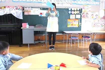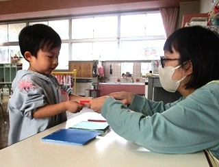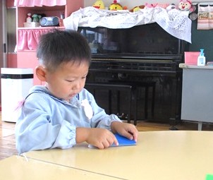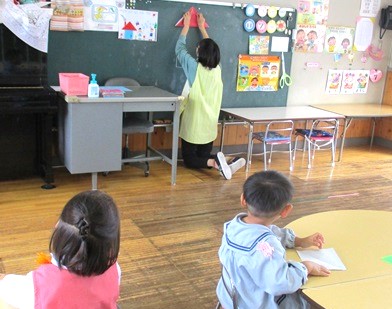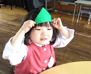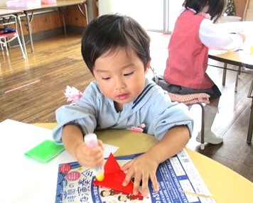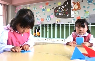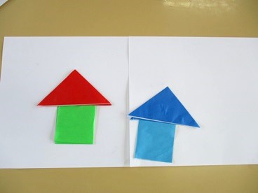 自分の好きな色の折り紙を2枚選んで、まずは三角を折ります。