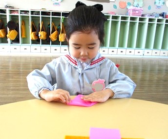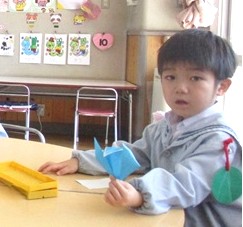 5色の折り紙の中から好きな色を選んで色とりどりの「おに」を作りました。