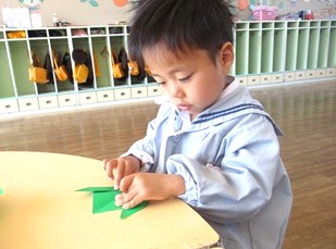 楽しかった豆まきを思い出しながら、折り紙で「おに」を折りました。