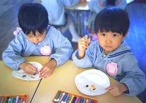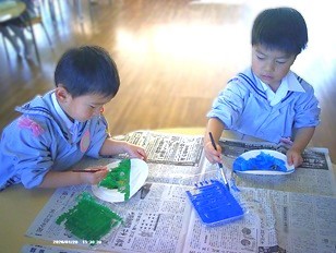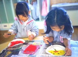 豆まきに向けて花組さんも鬼のお面づくりが始まりました。