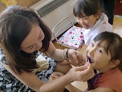 お母様に仕上げ磨きしていただきました。