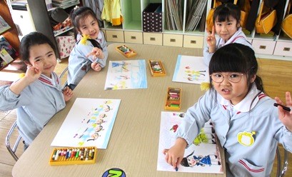 その後は各クラスに戻り、豆まきの楽しかった思い出をお絵描きしました。