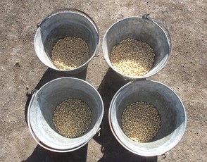 クラスごとのバケツに、拾ったお豆を入れるお約束をしてスタート!