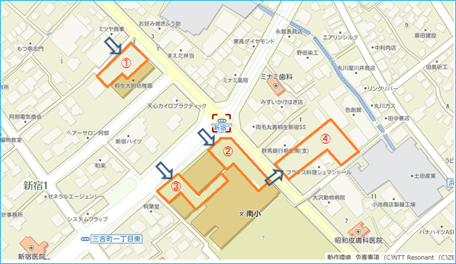 全組のご家族様: ①駐車場(満車の場合→④駐車場へ)