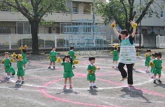 応援が響いた今日の園庭で、明日も運動会の練習がんばりましょうね!