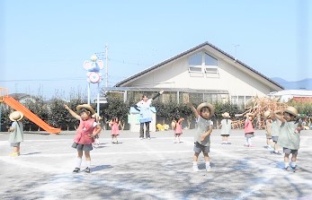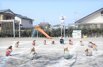つぼみ組さんのお遊戯は、円を作り踊ります。