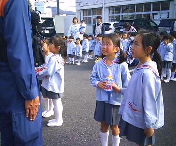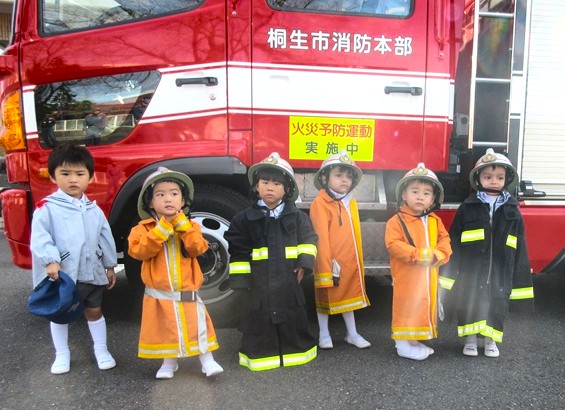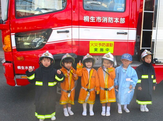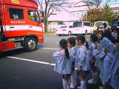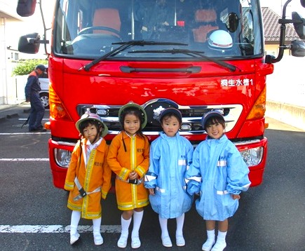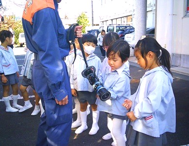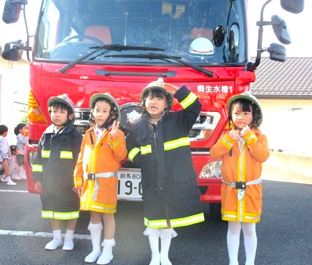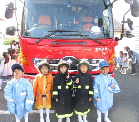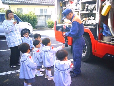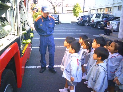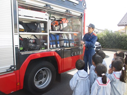 その後は、消防自動車を全クラスで見学させていただき、