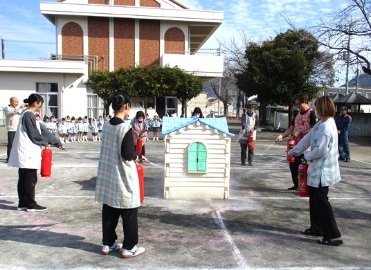 今月の避難訓練は ≪出火≫を想定して行いました。
