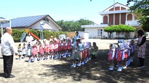 花組さんもつぼみ組さんも、園庭避難は初めてでしたが