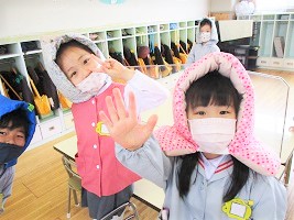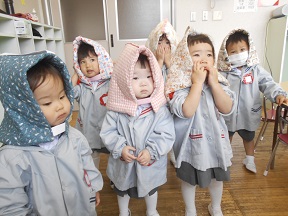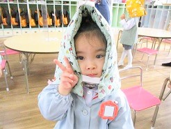 今回、新入園の子どもたちが初めて訓練を体験するということで