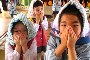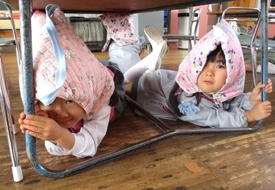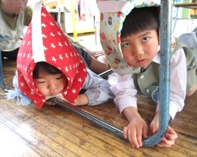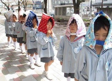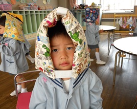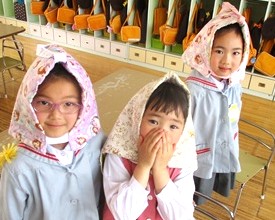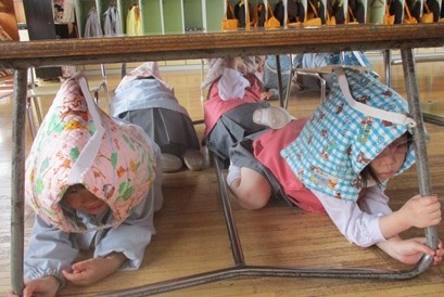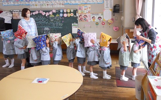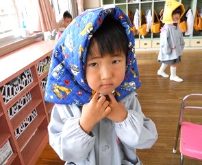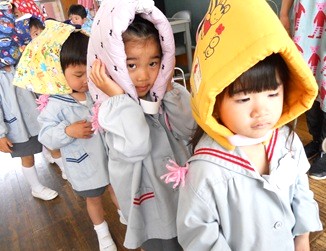 今回、新入園の子どもたちが初めて訓練を体験するということで