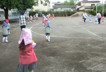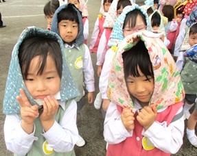 花組さんもつぼみ組さんも、園庭避難は初めてでしたが