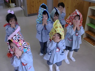 今日の天気に合わせて各クラスの避難場所を変更し、訓練しました。