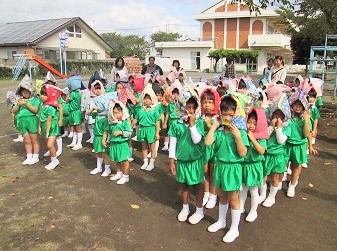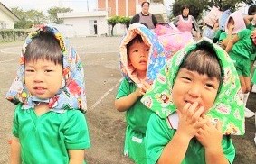 全クラス、出火の放送を聞いて 園庭に避難しました。