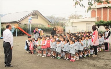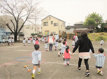 今日の避難訓練は、園庭で楽しく遊んでいるところ・・・・
