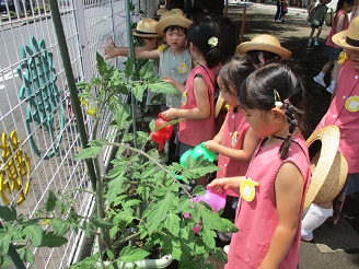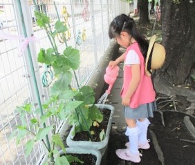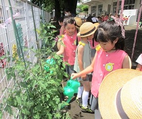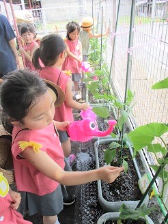 月組さんが植えた野菜たちが、段々と大きくなってきました。