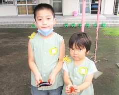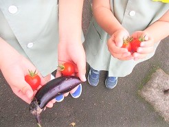 収穫したトマトは、月組さんでほんのちょっと味見させていただきました。