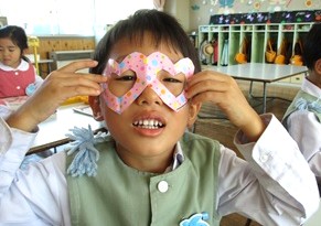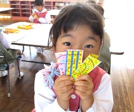 今日のきりがみあそびの題名は ≪おしゃれめがね≫です!