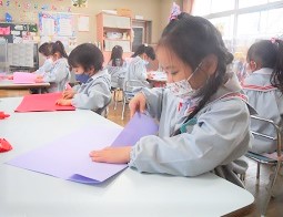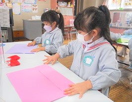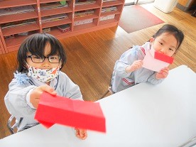 ですが、豆まきへの期待を膨らませてみんなで一生懸命折りました。