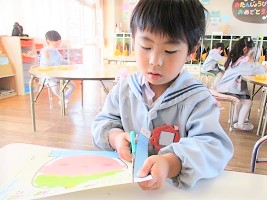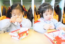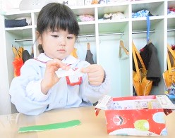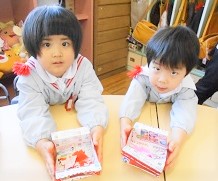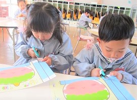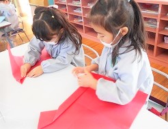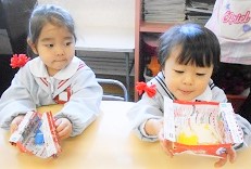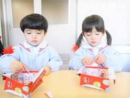 2月2日(火)の豆まきに向けて各クラスで鬼のお面作りが始まりました。