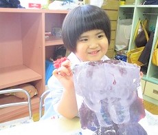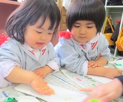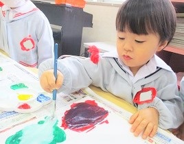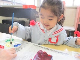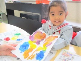 デカルコマニーという手法を使って凧の模様を作ります。