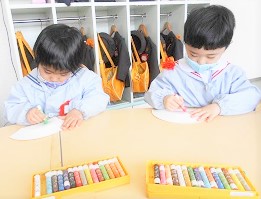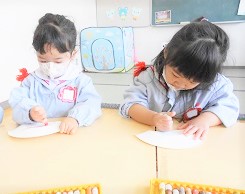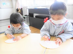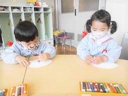 つぼみ組さんが、節分に向けて鬼のお面づくりを始めました。
