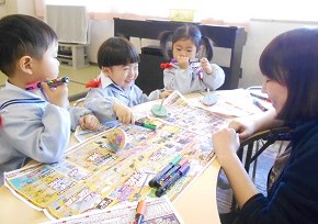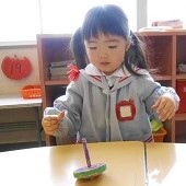 今日は、つぼみ組さんのコマ作りを紹介いたします。