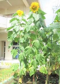 5月13日に種まきをしたひまわりが、夏休み中にすくすく育ちましたので、