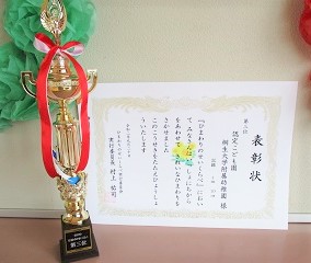 第3位の賞状とトロフィー。
