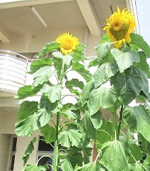 種まきをしたひまわりが、夏休み中にすくすく育ちましたので、