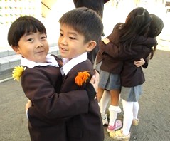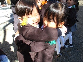 最後は一緒に手をつないだお友達とありがとうのハグをして楽しいえびすこう見学の終了です!