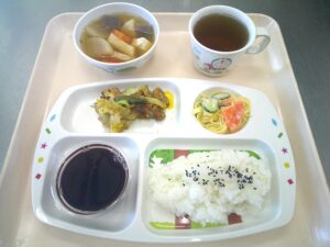 ごはん・けんちん汁・回鍋肉・ツナサラダスパゲッティ・ぶどうゼリー